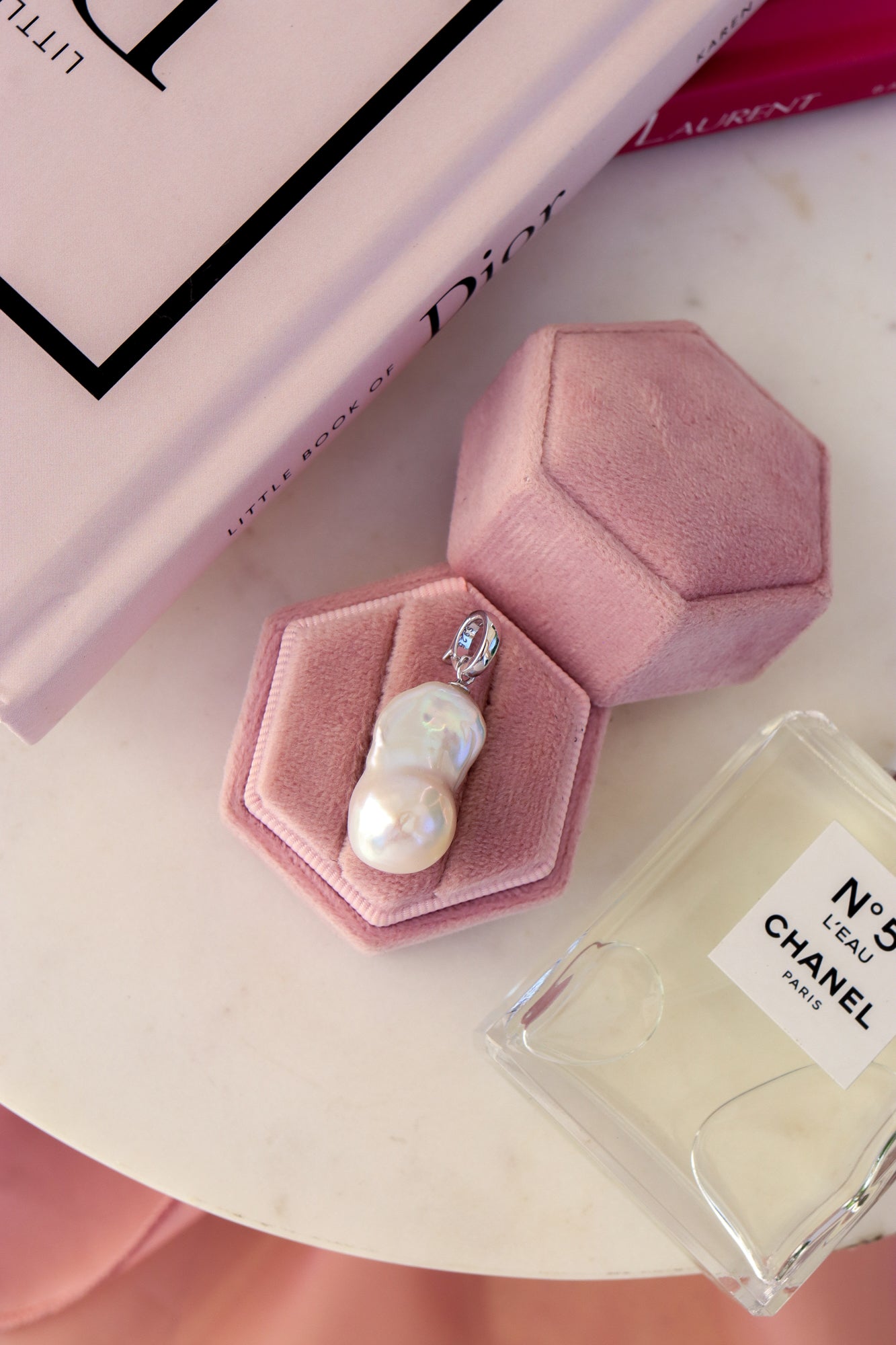 MATERIALE: argento 925; perla barocca di prima qualità, dimensione 24 x 13 mm, colore bianco