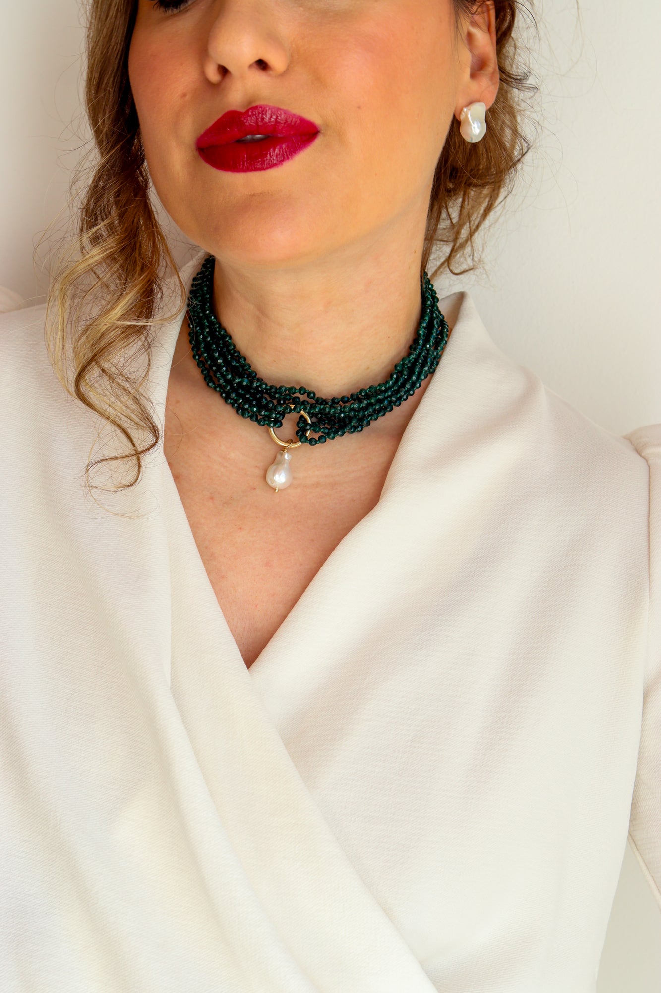 Una collana infinitamente versatile: puoi trasformarla indossandola semplicemente girandola più volte intorno al collo, oppure sfruttando la chiusura esterna per creare delle versioni creative e super eleganti