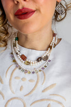 Nel cuore ardente del deserto, tra le dune dorate e il cielo infinito, si nasconde un miraggio di freschezza e splendore: un’oasi, dove la luce danza sull’acqua cristallina e riflette mille sfumature preziose. La collana Oasi di Luce cattura questa magia con l'eleganza senza tempo delle perle autentiche e la brillantezza delle pietre dure, che sembrano custodire frammenti di sole al loro interno.