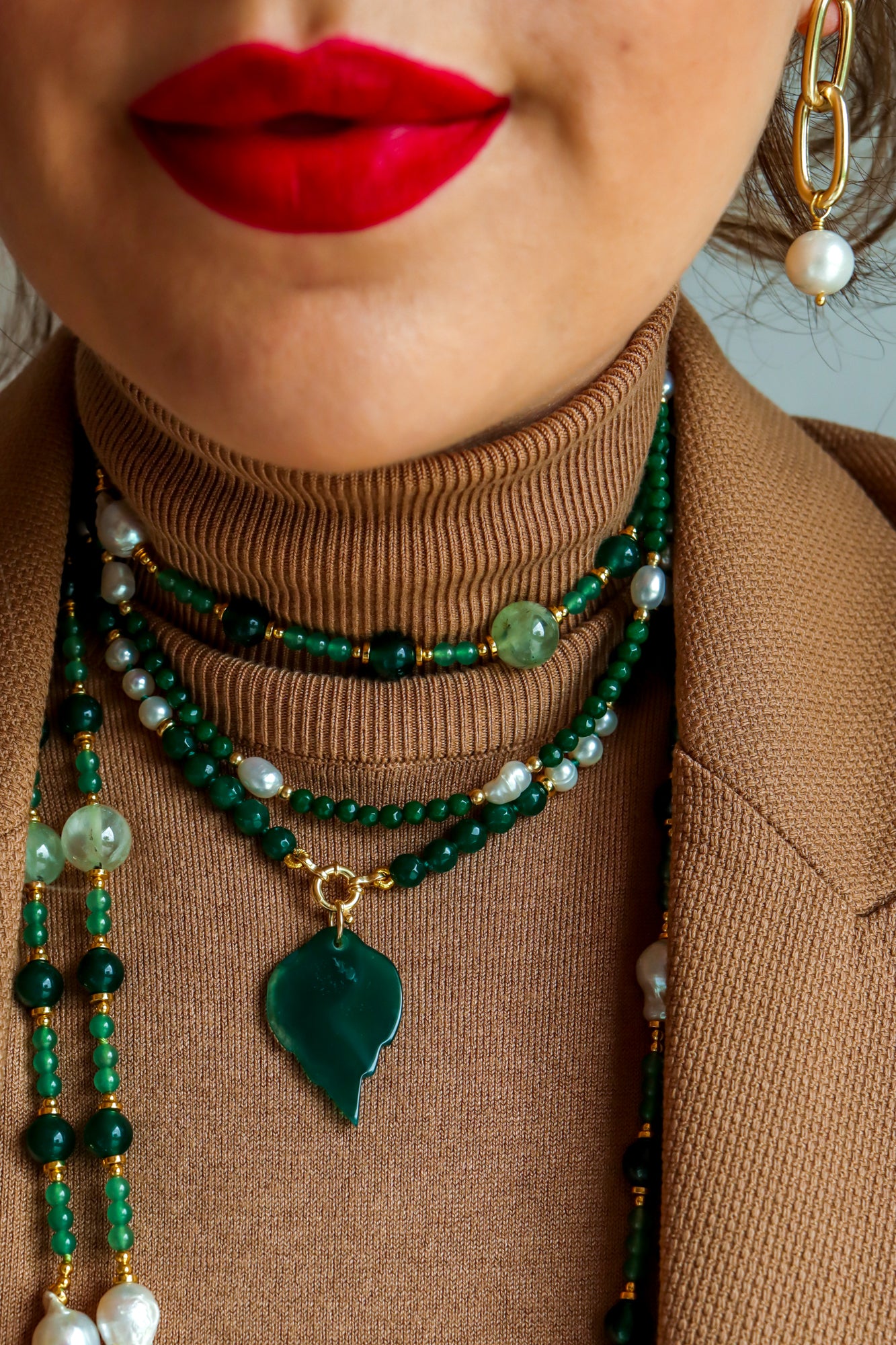È anche splendida indossata da sola: una collana che veste, definisce e impreziosisce il décolleté con un’eleganza immediata.