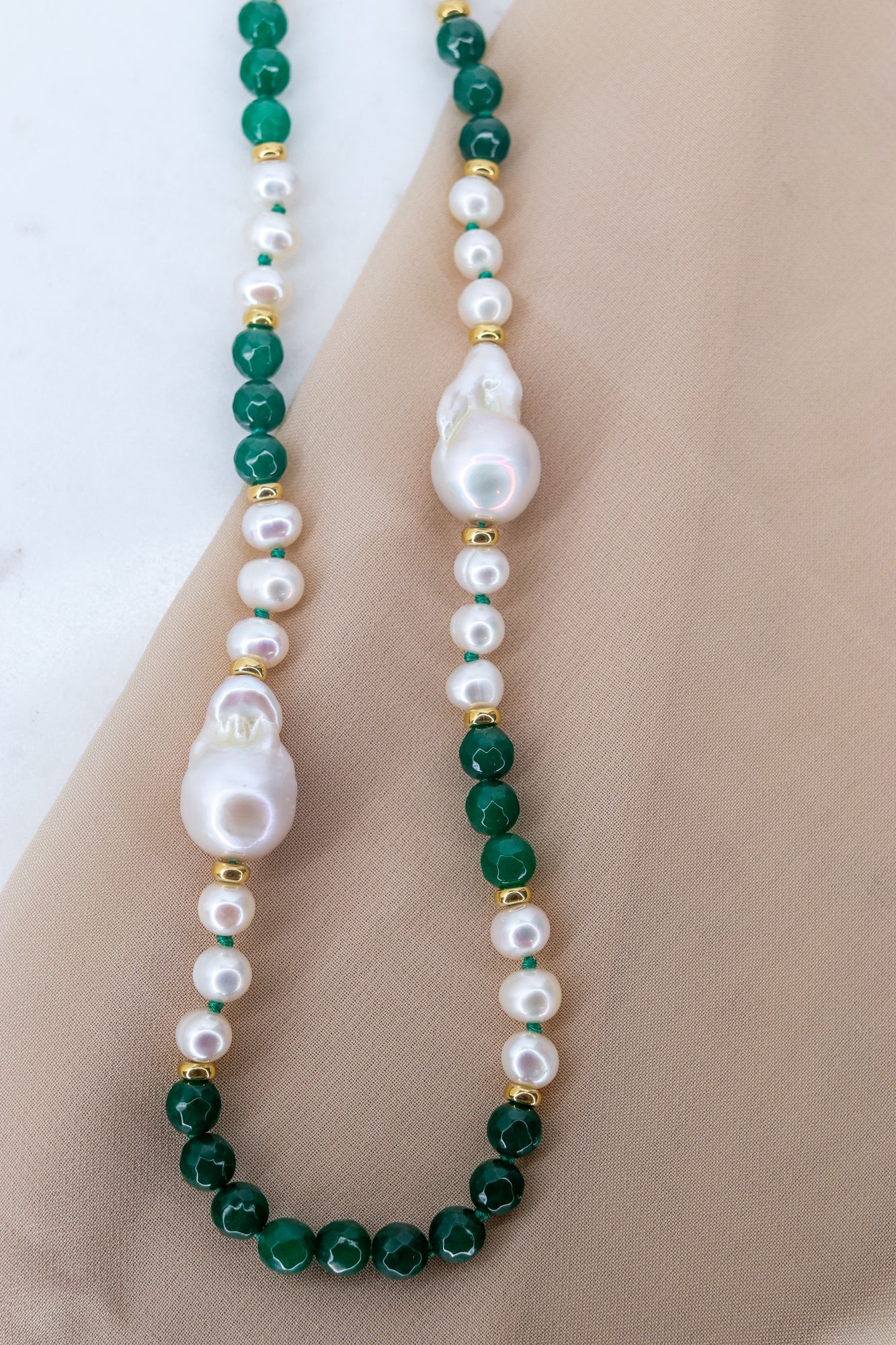Grada verde sfaccettata, perle di fiume autentiche, semi round e barocche, finemente selezionate