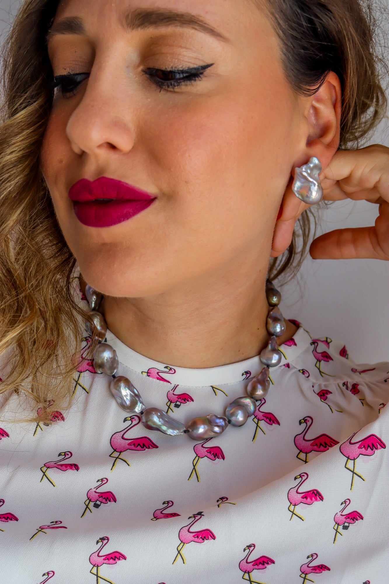 La collana ROYAL GRIGIA è una collana realizzata con perle barocche grigie di alta qualità, dal lustro alto. Un gioiello che è sufficiente per rendere splendido e unico qualsiasi look sceglierai.