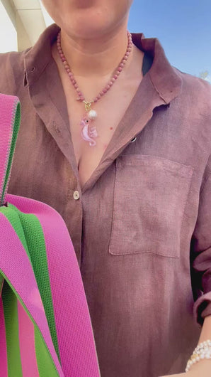 MATERIALE: argento 925 placcato oro 18k, la collana è realizzata con pietra rodonite sfaccettata, ciondolo in vetro di murano e perla autentica di fiume di circa 11 mm