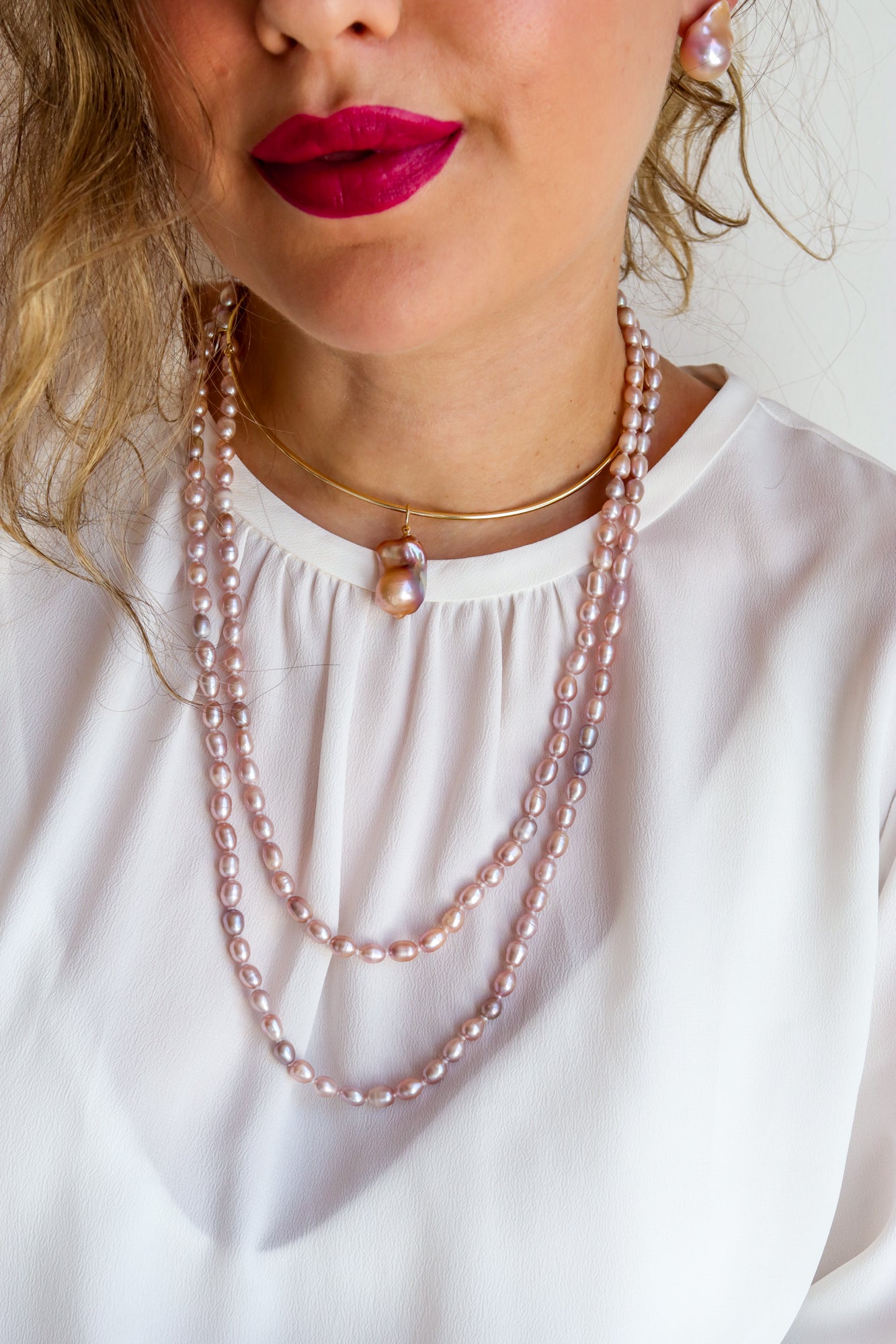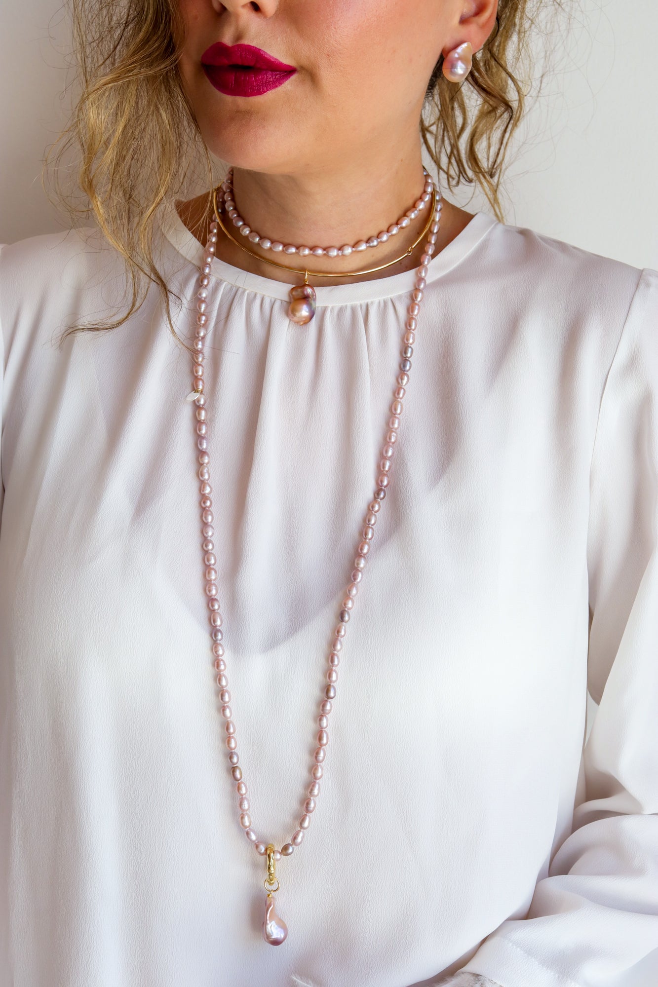 Pendente Sogno Rosa è un vero e proprio tocco di eleganza lussuosa: una perla barocca gigante, rosa, selezionata con cura per la sua qualità superiore, le sfumature iridescenti e la forma scultorea assolutamente irripetibile.