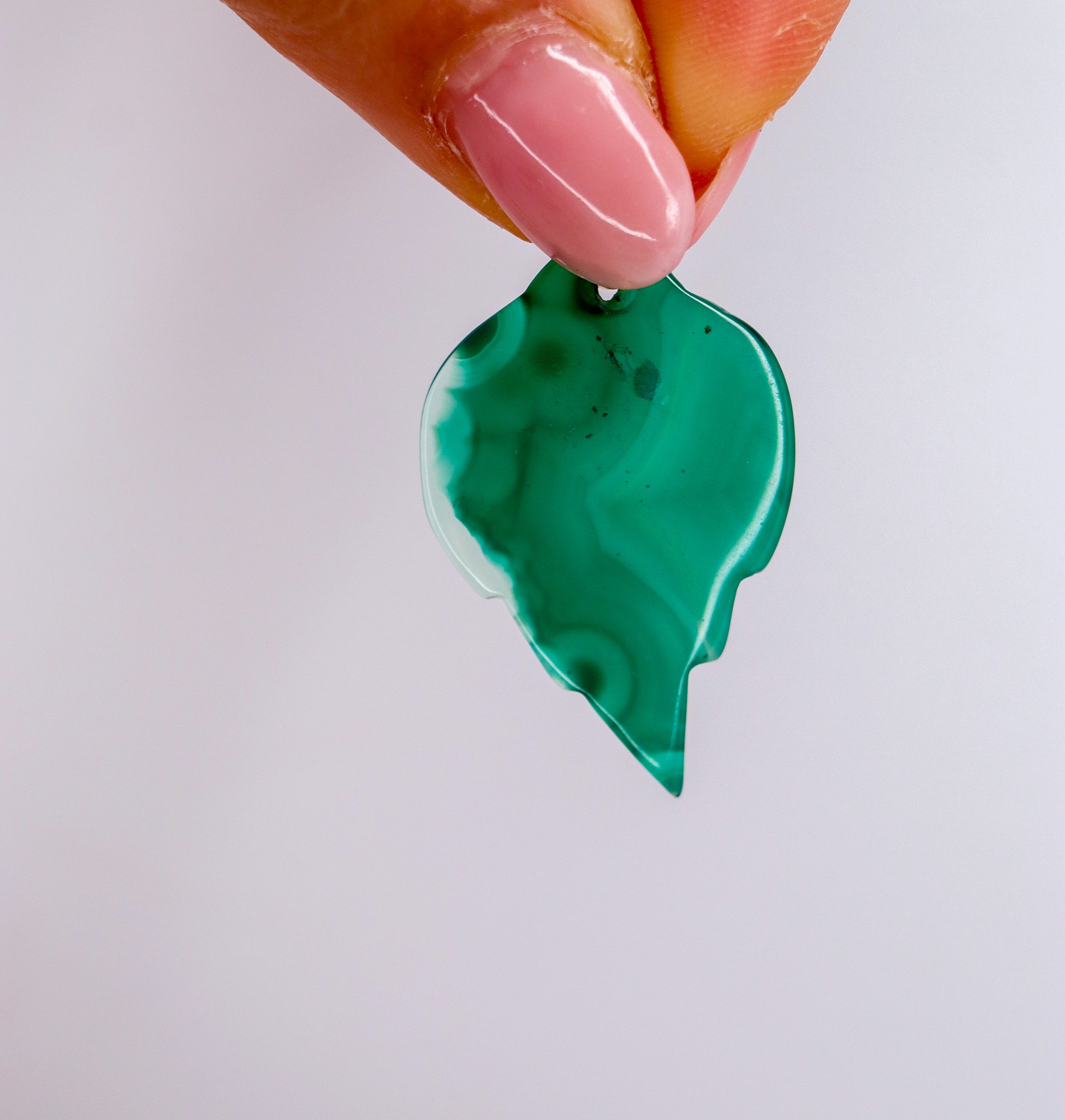 Giada verde a forma di foglia, pietra dura autentica, attenzione, trattandosi di pietre naturali, le sfumature e il colore del pendente sono uniche per ogni pendente